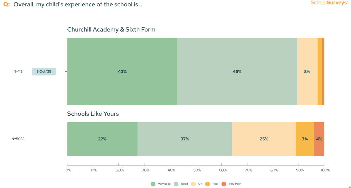 89% of families feel their child has a good experience of school at Churchill Academy & Sixth Form, compared to 75% nationally - a 14% difference!